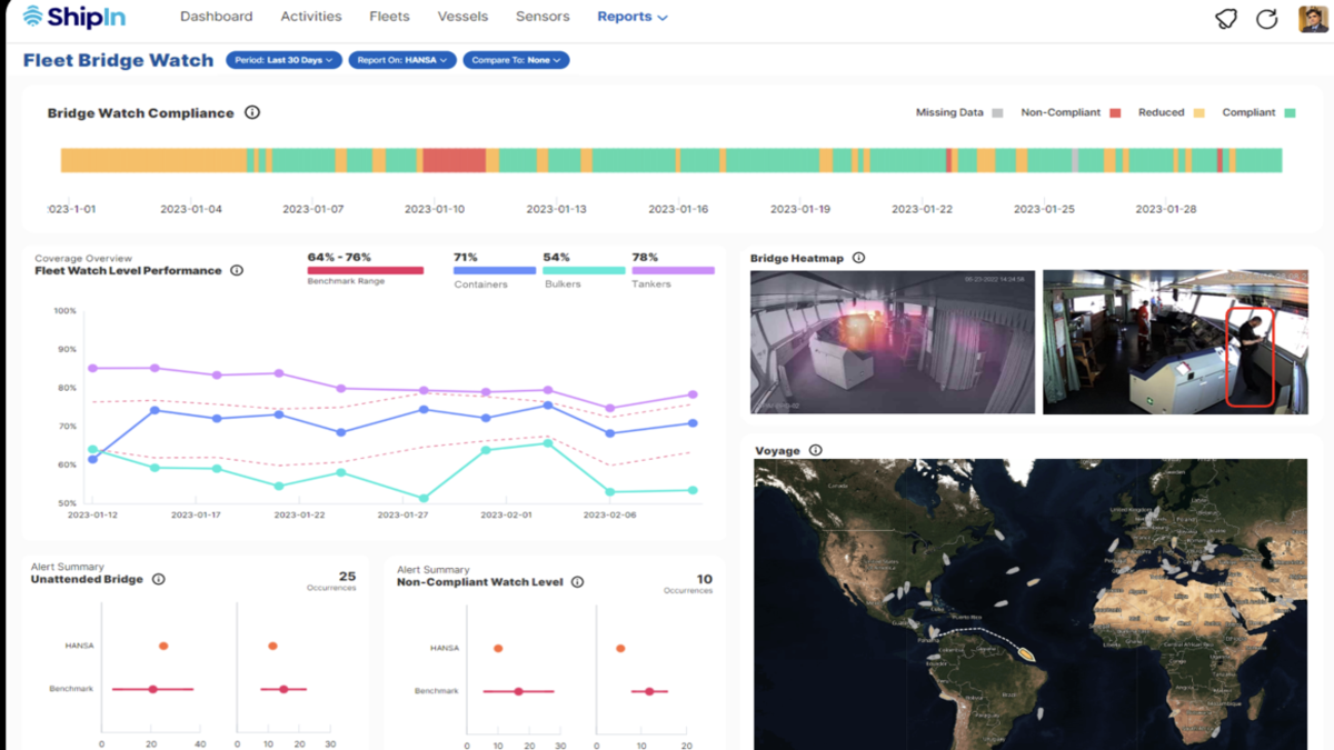 FleetVision detects events on board in real-time using AI-powered CCTV, giving crew and shoreside fleet managers the same visibility into ship operations and enabling them to identify any potential maintenance or safety risks related to operations, including cargo handling, security and maintenance.