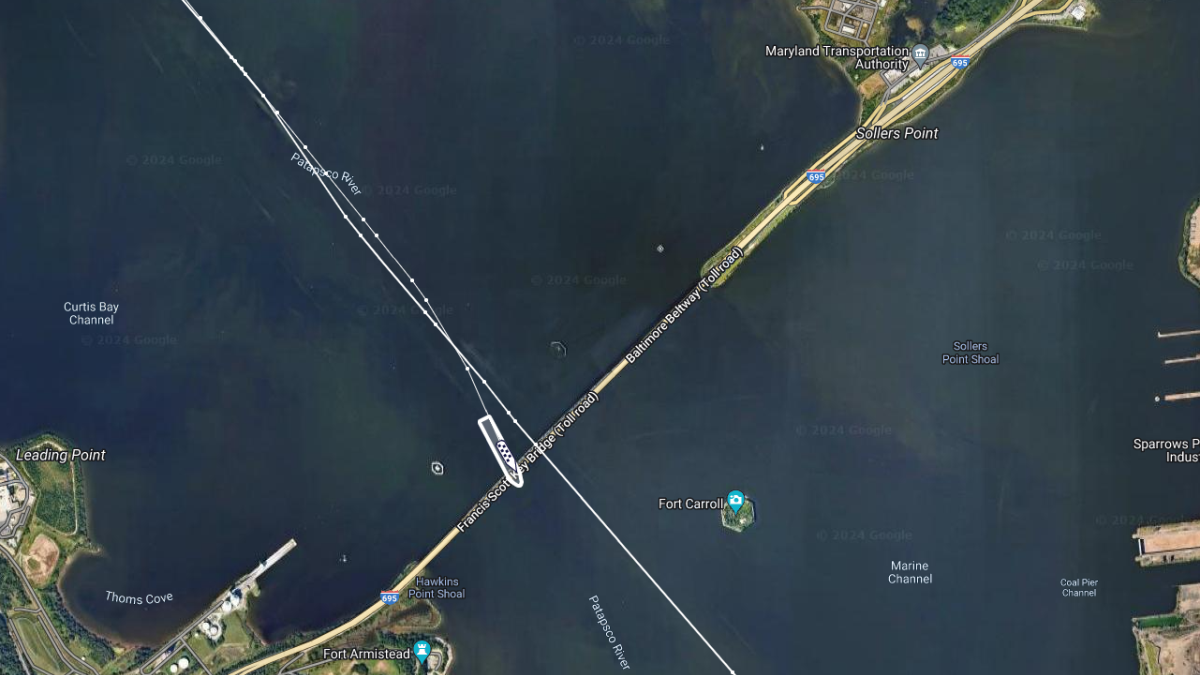 The four-lane Francis Scott Key bridge serves as the outermost crossing over Baltimore Harbor and is an important link of Interstate-695 (I-695), known as the Baltimore Beltway.