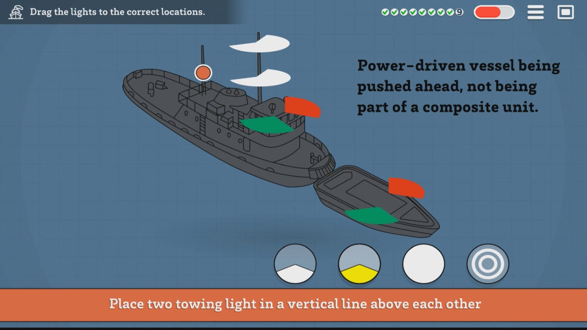 COLREGs Challenge includes more than 20 interactive modules covering practical maritime scenarios such as ship navigation, collision avoidance, and aids to navigation, such as lights, signals and buoys.