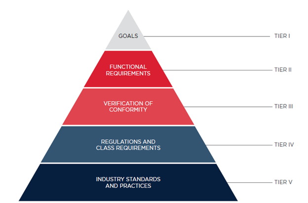 The GBS framework consists of five tiers, from high-level safety goals down to specific regulations and industry practices. It also provides a structured path for classifying novel FLNG power systems, giving stakeholders confidence that safety is maintained while onboarding new technology.