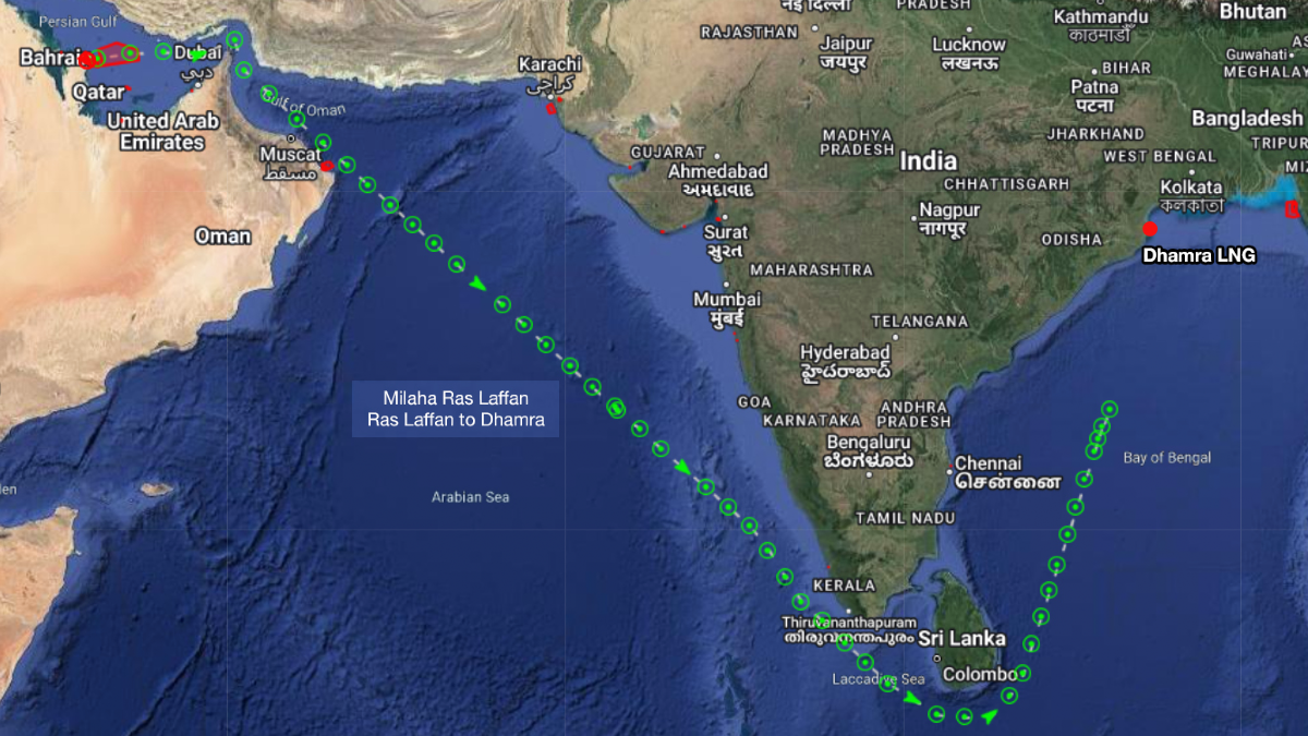 Pratiksha Negi, senior research analyst, Drewry Maritime Research, reported Qatar Shipping’s 138,200-m3 LNG carrier Milaha Ras Laffan is sailing in the Bay of Bengal after loading from Ras Laffan on 21 March. AIS data suggests India’s Dhamra as the destination of the gas carrer with an estimated arrival of between 5 and 6 April. The cargo will mark the first discharge for India’s seventh LNG terminal and only the second on the country’s eastern coast.