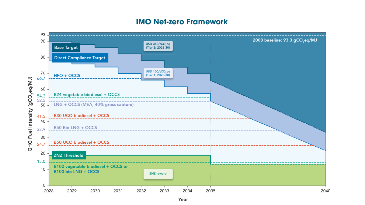 This compliance projection is not merely academic. IMO’s framework, including zero or near-zero (ZNZ) thresholds, could affect financial rewards and trading conditions under regional schemes like the EU Emissions Trading System. The potential of OCCS to reduce allowance surrender obligations will depend on whether CO2 storage or utilisation meets legislative requirements.