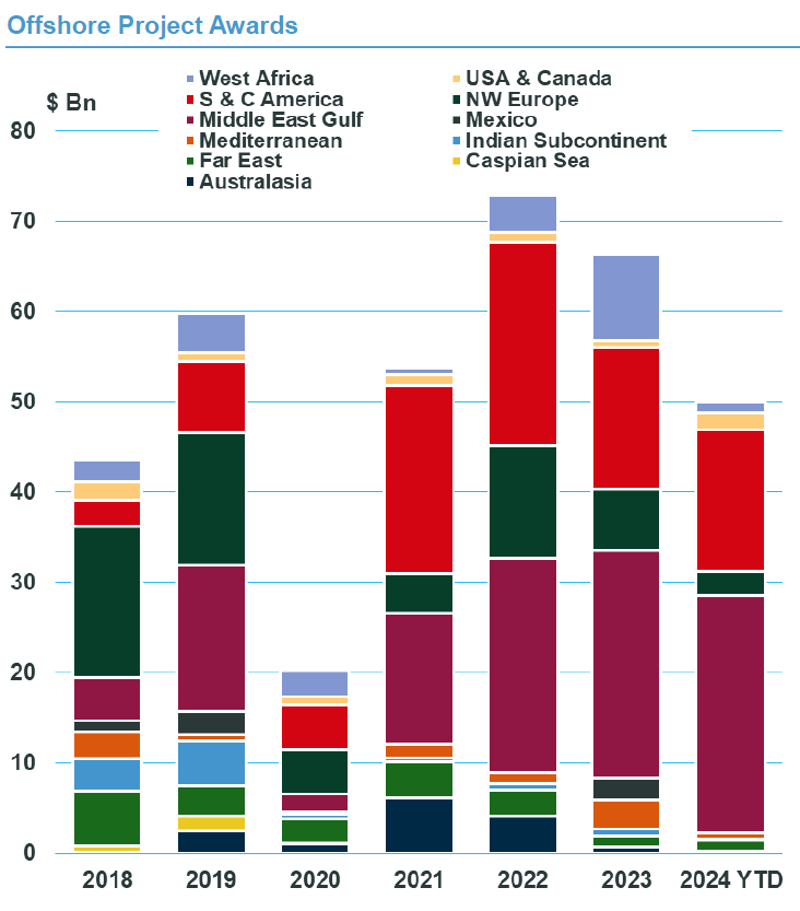 Market analysts MSI said the Gulf region continues to contribute strongly to contract volumes with US$50Bn in awards during H1 2024. The energy analysts said that if the current rate continues, 2024 capex spend will outstrip levels seen in 2022 and 2023.