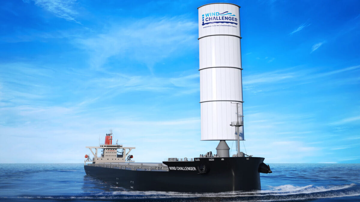 Wind Challenger uses two 49-m fibre-glass reinforced plastic sails which can be retracted to lower the centre of gravity and keep the ship stable in rough weather. A fully automated control system, complete with proprietary technology, uses sensors to detect the speed and direction of the wind and automatically extends, reduces and rotates the sails.
