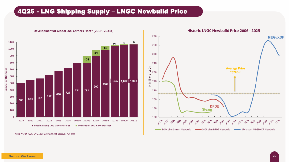 The company noted its existing modern fleet comprises 69 LNG carriers, two very large LPG carriers, one FSRU, and an orderbook of 36 LNG carriers and four LPG/ammonia carriers.