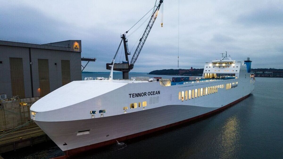 The ship has left the Flensburg Fjord and set course for Bremerhaven according to Flensburger. The 210-m ferry is on the move to Dock 3 at Lloyd Werft. In the course of its week-long stay, Flensburger will carry out the remaining work on the ship’s hull to optimise the performance data, following which Tennor Ocean will set out on a multi-day test voyage on the North Sea and the Baltic Sea.