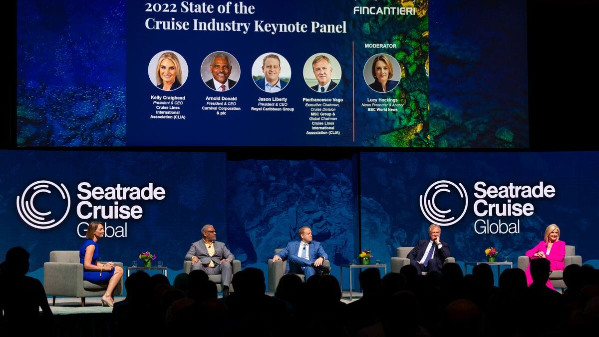 The State of the Cruise Industry keynote session gathered together CLIA president and chief executive Kelly Craighead, Carnival Corp president and chief executive Arnold Donald, Royal Caribbean Group president and chief executive Jason Liberty and MSC Group cruise division executive chairman Pierfrancesco Vago to focus on the main topics in the industry.