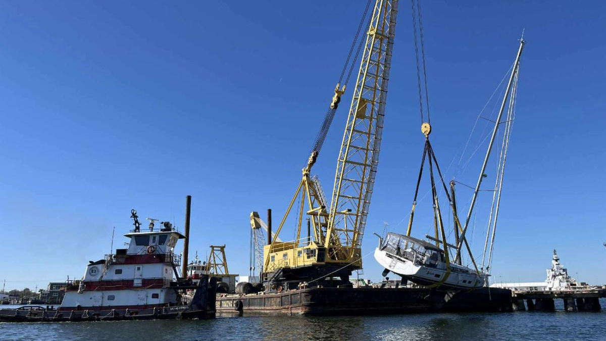 Upon arrival at the dock, the sailboat was safely placed on pedestals and jack stands, where it was inspected by insurance surveyors to determine its condition and the next steps.