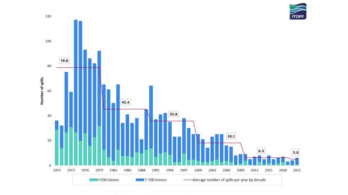 The latest data from ITOPF for 2021 shows tanker spills were within the long-term average, even if the number of overall oil spills increased slightly