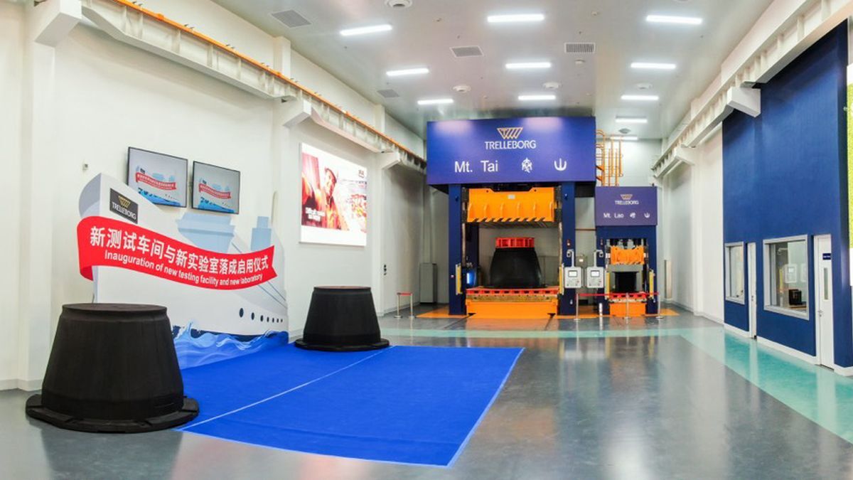 Trelleborg added a testing facility to its Qingdao manufacturing site in China, to verify and test fenders in line with the WG 211 guidelines. Test presses cover the requirements for marine fenders of varying sizes, to evaluate performance under various load conditions and simulate real-world scenarios including shear, fatigue, high speed and shear-compression.